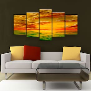 Tamanho total: 129cm comprimento X 61cm altura Peças menores: 25x40 cm Peças médias: 25x50 cm Peça central: 25x61 cm Espaçamento entre as peças: 1 cm A instalação é bem simples, pois utilizamos o método tradicional, pendurado com preguinhos. Acompanha um gabarito para facilitar a aplicação. A aplicação com o gabarito que enviamos é prática e rápida. Para limpeza, utilize apenas um pano umedecido com água sem produtos químicos para garantir a durabilidade. Nossos quadros são impressos em vinil semi-fosco de alta qualidade, aplicado em Madeira MDF com espessura de 6mm + base de madeira MDF de 9mm Total 15mm Não necessita de moldura, pois o acabamento das bordas/laterais é feito com a própria imagem impressa. Impressão em alta qualidade. Imagens em HD Alta Definição Mínimo de 12000 pixels. Marca: Não Informado