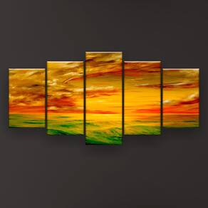 Tamanho total: 129cm comprimento X 61cm altura Peças menores: 25x40 cm Peças médias: 25x50 cm Peça central: 25x61 cm Espaçamento entre as peças: 1 cm A instalação é bem simples, pois utilizamos o método tradicional, pendurado com preguinhos. Acompanha um gabarito para facilitar a aplicação. A aplicação com o gabarito que enviamos é prática e rápida. Para limpeza, utilize apenas um pano umedecido com água sem produtos químicos para garantir a durabilidade. Nossos quadros são impressos em vinil semi-fosco de alta qualidade, aplicado em Madeira MDF com espessura de 6mm + base de madeira MDF de 9mm Total 15mm Não necessita de moldura, pois o acabamento das bordas/laterais é feito com a própria imagem impressa. Impressão em alta qualidade. Imagens em HD Alta Definição Mínimo de 12000 pixels. Marca: Não Informado