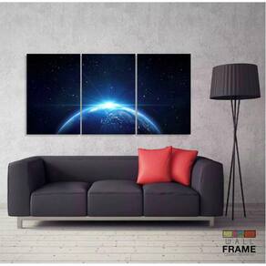 Quadro Decorativo Planeta Terra 3 partes 120x60 em tecido