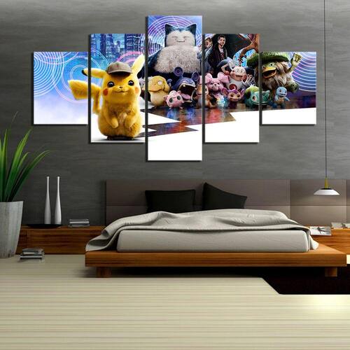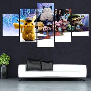 Quadro Decorativo Pokemom2 5 peças 130x65 cm em tecido