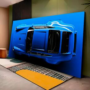 Quadro Decorativo Porsche 911 Azul Moldura Preta - 150x100cm -