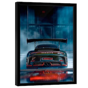 Quadro Decorativo Porsche GT3 RS Moldura Branca e Vidro - 118x78cm -