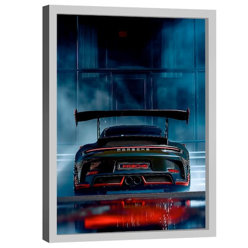 Quadro Decorativo Porsche GT3 RS Moldura Branca - 180x105cm -