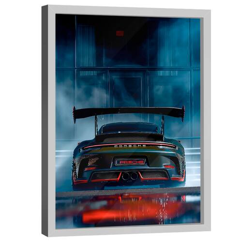 Quadro Decorativo Porsche GT3 RS Moldura Branca e Vidro - 150x100cm -
