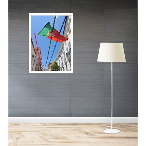Quadro decorativo portugal bandeira céu - 70x50cm Cor: moldura preta Informações do produto tire todas as suas dúvidas no descritivo abaixo: decoração para quarto, sala, cozinha, escritório, área gourmet e muito mais. Chega de paredes vazias medidas - cada peça tem 70x50cm . Material do papel - papel fotográfico brilhante de altíssima resolução acabamento - todos os quadros são acompanhados de vidro para proteção da imagem. - moldura em madeira maciça na cor preta ou branca conforme produto escolhido e pendurador. - os quadros são embalados de forma segura com plástico bolha com camada dupla de acordo com o tamanho dos quadros. - de 3 meses. Meu quadro chegou. Como posso fixá-lo Você precisa apenas de um martelo e um prego, pois os quadros já vão acompanhados de penduradores. Esta é a forma mais indicada. Como posso limpar meu quadro A limpeza é feita como um móvel comum da sua casa. Apenas um pano seco ou espanador são suficientes para tal Marca: Não Informado