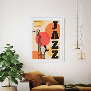 Quadro decorativo poster jazz 60x48cm Moldura: madeira preta Informações do produto tire todas as suas dúvidas no descritivo abaixo: decoração para quarto, sala, cozinha, escritório, área gourmet e muito mais. Chega de paredes vazias medidas - cada peça tem 60x48cm . Material do papel - papel fotográfico brilhante de altíssima resolução acabamento - todos os quadros são acompanhados de vidro para proteção da imagem. - moldura em madeira maciça na cor preta ou branca conforme produto escolhido e pendurador. - paspatur branco com 7cm de largura - os quadros são embalados de forma segura com plástico bolha com camada dupla de acordo com o tamanho dos quadros. Garantia - garantia de 3 meses. Meu quadro chegou. Como posso fixá-lo Você precisa apenas de um martelo e um prego, pois os quadros já vão acompanhados de penduradores. Esta é a forma mais indicada. Como posso limpar meu quadro A limpeza é feita como um móvel comum da sua casa. Apenas um pano seco ou espanador são suficientes para tal