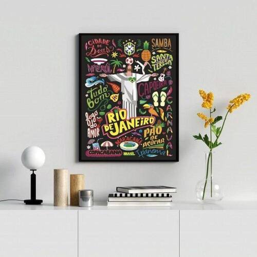 Quadro decorativo poster rio de janeiro 33x24cm Moldura: madeira preta Informações do produto tire todas as suas dúvidas no descritivo abaixo: decoração para quarto, sala, cozinha, escritório, área gourmet e muito mais. Chega de paredes vazias medidas - cada peça tem 33x24cm a4 . Material do papel - papel fotográfico brilhante de altíssima resolução acabamento - todos os quadros são acompanhados de uma película de acetato para proteção da imagem. - os quadros são embalados de forma segura com plástico bolha com camada dupla de acordo com o tamanho dos quadros. Garantia - garantia de 3 meses. Meu quadro chegou. Como posso fixá-lo Você precisa apenas de um martelo e um prego, pois os quadros já vão acompanhados de penduradores. Esta é a forma mais indicada. Caso prefira, você pode utilizar uma fita dupla face neste caso, sugerimos de alta qualidade para evitar que descole e seu quadro caia . Como posso limpar meu quadro A limpeza é feita como um móvel comum da sua casa. Apenas um pano seco ou espanador são suficientes para tal Ean: 7891788104560
