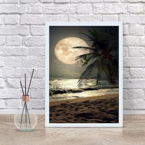 Quadro decorativo praia com lua cheia 45x34cm Moldura: madeira preta Informações do produto tire todas as suas dúvidas no descritivo abaixo: decoração para quarto, sala, cozinha, escritório, área gourmet e muito mais. Chega de paredes vazias. Medidas - cada peça tem 45x34cm a3 . Material do papel - papel fotográfico brilhante de altíssima resolução acabamento - todos os quadros são acompanhados de uma película de acetato para proteção da imagem. - os quadros são embalados de forma segura com plástico bolha com camada dupla de acordo com o tamanho dos quadros. Garantia - garantia de 3 meses. Meu quadro chegou. Como posso fixá-lo Você precisa apenas de um martelo e um prego, pois os quadros já vão acompanhados de penduradores. Esta é a forma mais indicada. Caso prefira, você pode utilizar uma fita dupla face neste caso, sugerimos de alta qualidade para evitar que descole e seu quadro caia . Como posso limpar meu quadro A limpeza é feita como um móvel comum da sua casa. Apenas um pano seco ou espanador são suficientes para tal Ean: 7899617618714