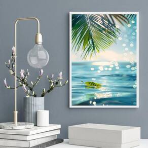 Quadro decorativo praia - folha 24x18cm - com vidro Cor: moldura branca Informações do produto tire todas as suas dúvidas no descritivo abaixo: decoração para quarto, sala, cozinha, escritório, área gourmet e muito mais. Chega de paredes vazias medidas - cada peça tem 24x18cm a5 . Material do papel - papel fotográfico brilhante de altíssima resolução acabamento - todos os quadros são acompanhados de vidro para proteção da imagem. - moldura em madeira maciça na cor preta ou branca conforme produto escolhido e pendurador . - os quadros são embalados de forma segura com plástico bolha com camada dupla de acordo com o tamanho dos quadros. Garantia - garantia de 3 meses. Meu quadro chegou. Como posso fixá-lo Você precisa apenas de um martelo e um prego, pois os quadros já vão acompanhados de penduradores. Esta é a forma mais indicada. Como posso limpar meu quadro A limpeza é feita como um móvel comum da sua casa. Apenas um pano seco ou espanador são suficientes para tal