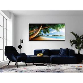 Quadro Decorativo Praia Mar Coqueiro 130x60 Moldura Preta 2x2