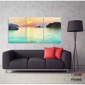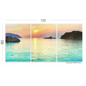 Quadro Decorativo Praia Por Do Sol Azul Hd 120x60 3 peças