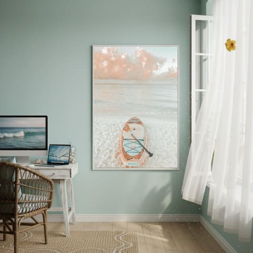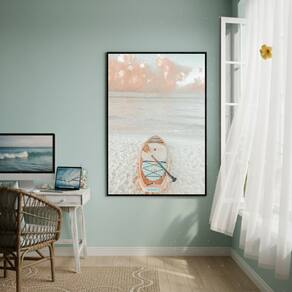 Quadro Decorativo Prancha De Surf-70x50cm - Cor: Moldura Branca