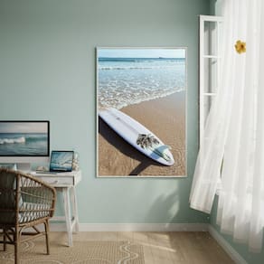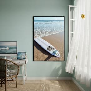 Quadro Decorativo Prancha De Surf Na Praia-70x50cm - Cor: Moldura Branca