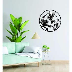 Quadro Decorativo Preto Mdf Beija-Flor 40X20Cm