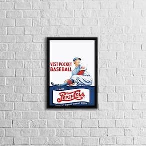 Quadro Decorativo Propaganda Antiga Pepsi Baseball - Tamanho: A4 (20 x 30) / Acabamento: Película de acetato / Moldura: Madeira preta