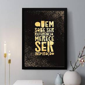 Quadro decorativo quem sabe ser referência 45x34cm - com vidro Cor: moldura preta Informações do produto tire todas as suas dúvidas no descritivo abaixo: decoração para quarto, sala, cozinha, escritório, área gourmet e muito mais. Chega de paredes vazias medidas - cada peça tem 45x34cm a3 . Material do papel - papel fotográfico brilhante de altíssima resolução acabamento - todos os quadros são acompanhados de vidro para proteção da imagem. - moldura em madeira maciça na cor preta ou branca conforme produto escolhido e pendurador . - os quadros são embalados de forma segura com plástico bolha com camada dupla de acordo com o tamanho dos quadros. Garantia - garantia de 3 meses. Meu quadro chegou. Como posso fixá-lo Você precisa apenas de um martelo e um prego, pois os quadros já vão acompanhados de penduradores. Esta é a forma mais indicada. Como posso limpar meu quadro A limpeza é feita como um móvel comum da sua casa. Apenas um pano seco ou espanador são suficientes para tal