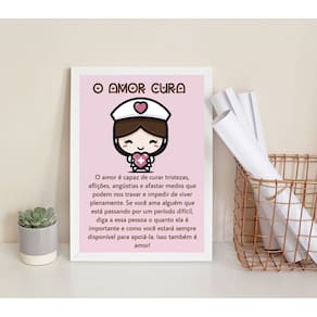 Quadro decorativo reflexão o amor cura 45x34cm Moldura: madeira preta Informações do produto tire todas as suas dúvidas no descritivo abaixo: decoração para quarto, sala, cozinha, escritório, área gourmet e muito mais. Chega de paredes vazias. Medidas - cada peça tem 45x34cm a3 . Material do papel - papel fotográfico brilhante de altíssima resolução acabamento - todos os quadros são acompanhados de uma película de acetato para proteção da imagem. - os quadros são embalados de forma segura com plástico bolha com camada dupla de acordo com o tamanho dos quadros. Garantia - garantia de 3 meses. Meu quadro chegou. Como posso fixá-lo Você precisa apenas de um martelo e um prego, pois os quadros já vão acompanhados de penduradores. Esta é a forma mais indicada. Caso prefira, você pode utilizar uma fita dupla face neste caso, sugerimos de alta qualidade para evitar que descole e seu quadro caia . Como posso limpar meu quadro A limpeza é feita como um móvel comum da sua casa. Apenas um pano seco ou espanador são suficientes para tal Ean: 7898534947051