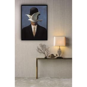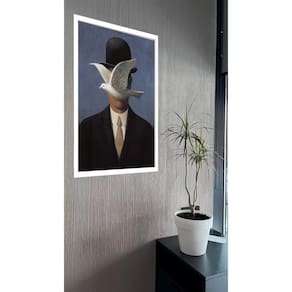 Quadro decorativo rené magritte ilusionismo - 70x50cm Cor: moldura preta Informações do produto tire todas as suas dúvidas no descritivo abaixo: decoração para quarto, sala, cozinha, escritório, área gourmet e muito mais. Chega de paredes vazias medidas - cada peça tem 70x50cm . Material do papel - papel fotográfico brilhante de altíssima resolução acabamento - todos os quadros são acompanhados de vidro para proteção da imagem. - moldura em madeira maciça na cor preta ou branca conforme produto escolhido e pendurador. - os quadros são embalados de forma segura com plástico bolha com camada dupla de acordo com o tamanho dos quadros. - de 3 meses. Meu quadro chegou. Como posso fixá-lo Você precisa apenas de um martelo e um prego, pois os quadros já vão acompanhados de penduradores. Esta é a forma mais indicada. Como posso limpar meu quadro A limpeza é feita como um móvel comum da sua casa. Apenas um pano seco ou espanador são suficientes para tal Marca: Não Informado