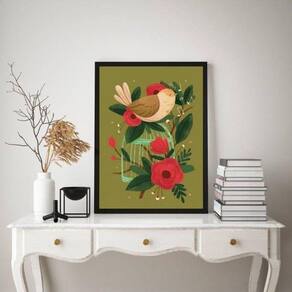 Quadro decorativo retrô passarinho cantando 24x18cm