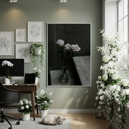 Quadro Decorativo Rosas Brancas 70x50cm Mold Branca