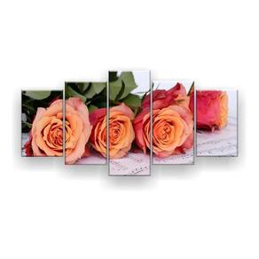 Quadro Decorativo Rosas Laranja Música 129x61 Sala Quarto