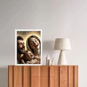 Quadro decorativo sagrada família sorridente 24x18cm - com vidro Moldura: madeira branca Informações do produto tire todas as suas dúvidas no descritivo abaixo: decoração para quarto, sala, cozinha, escritório, área gourmet e muito mais. Chega de paredes vazias medidas - cada peça tem 24x18cm a5 . Material do papel - papel fotográfico brilhante de altíssima resolução acabamento - todos os quadros são acompanhados de vidro para proteção da imagem. - moldura em madeira maciça na cor preta ou branca conforme produto escolhido e pendurador . - os quadros são embalados de forma segura com plástico bolha com camada dupla de acordo com o tamanho dos quadros. Garantia - garantia de 3 meses. Meu quadro chegou. Como posso fixá-lo Você precisa apenas de um martelo e um prego, pois os quadros já vão acompanhados de penduradores. Esta é a forma mais indicada. Como posso limpar meu quadro A limpeza é feita como um móvel comum da sua casa. Apenas um pano seco ou espanador são suficientes para tal