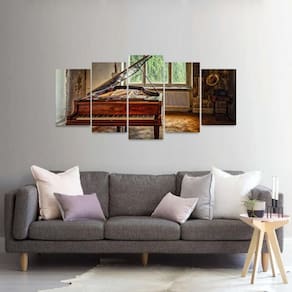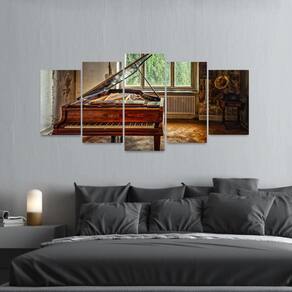 Especificações: Quadro decorativo Mosaico de 5 Peças: Tamanho total de 125x60 cm Comprimento x Altura 02 Peças menores de 25x40 cm cada 02 Peças Médias de 25x50 cm cada 01 Peça Central de 25x60 cm Espaçamento sugerido entre as peças - 1 á 2 cm Espessura do produto - 9 mm