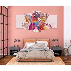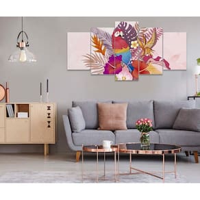 Quadro Decorativo Sala Quarto Escritório Arara Florida Os quadros decorativos são uma tendência e excelente ideia para quem desejar realmente mudar o visual do seu ambiente, deixando ele com a sua cara. São Utilizados para decorar vários ambientes seja um comércio, sua sala, quarto, área de lazer ou escritório, são lindos, leves e fáceis de instalar. Também pode quebrar aquele galho tampando aquelas pequenas imperfeições indesejadas da parede, com um toque super elegante. Decorar o seu ambiente é sempre um momento muito especial. Características do Produto: Tamanho total: 130cm comprimento X 63cm altura Peças menores: 25x40 cm | Peças médias: 25x51 cm | Peça central: 25x63 cm Espaçamento entre as peças: 1 cm a 2 cm Espessura do produto - 2 CM Quadro pronto para pendurar no local desejado. Material e Acabamentos: Tela em Tecido com impressão digital ecológica, de alta tecnologia, Atóxica e sem cheiro, proporcionando imagens de alta qualidade e durabilidade. Bordas com a extensão da própria imagem nas laterais, sendo uma tela painel. Tecido esticado no chassi de madeira e grampeado no verso, com suportes triangulares para a fixação. Um pouco mais sobre o Tecido O tecido é sintético fechado, sua flexibilidade evita que a impressão fique com aparência pigmentada, caso o material seja esticado. É muito utilizado em museus, exposições de arte, eventos, na identificação e principalmente Na decoração de ambientes. Como fixar no local: Fixação feita de forma tradicional, basta colocar dois parafusos ou dois pregos de acordo com os engates do quadro, Deixando espaçamento entre as peças de 1,5 CM ou até no máximo 2,5 CM. Limpeza após fixação: Para a limpeza basta apenas um espanador ou pano macio, sem conter elementos químicos. Objetos/móveis ilustrativos da imagens não inclusos somente o quadro. O Produto pode de ocorrer de ter uma leve diferença de tom de cor da que esta no monitor do seu computador. O Produto é produzido e postado em até 3 dias úteis após a confirmação do pagamento. Ean: 7897685913151