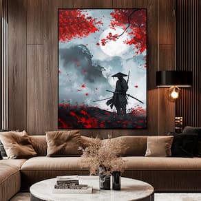 Quadro Decorativo Samurai Ásia Moldura Preta e Vidro - 84x54cm -