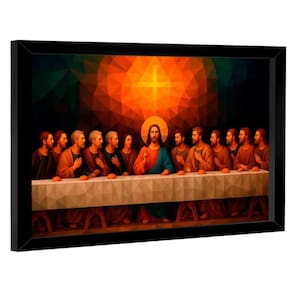 Quadro Decorativo Santa Ceia Geométrica Quadro Decorativo Santa Ceia Geométrica Moldura Preta - 118x78cm - Especificações