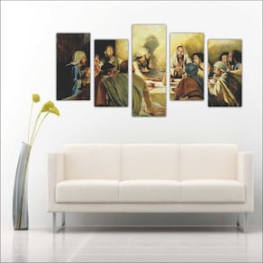 Quadro mosaico com 5 peças Tamanho total 127 cm X 63 cm colocado na parede com espaçamento de 3 cm entre cada peça. Tamanhos Específico Dos Quadros 4 quadros 23 cm x 46 cm 1 quadro 23 cm x 63 cm Qualidade Do Quadro / Impressão e Acabamento - Qualidade Fotográfica Da Imagem. - Material: Quadros impressos em adesivo com qualidade fotográfica, aplicado em MDF com espessura de 12 mm, com acabamentos laterais em preto fosco. - Quadro pronto para colocação na parede. Conteúdo da embalagem: Quadro completo com 5 peças.