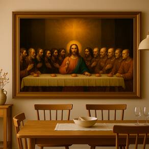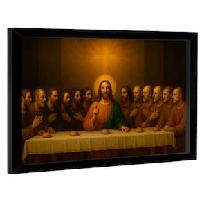 Quadro Decorativo Santa Ceia Realista Moldura Preta - 84x54cm -