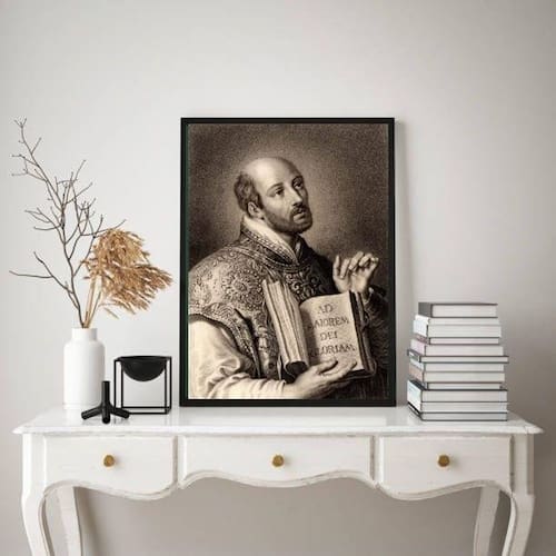 Quadro decorativo santo inácio de loyola 45x34cm Moldura: madeira preta Informações do produto tire todas as suas dúvidas no descritivo abaixo: decoração para quarto, sala, cozinha, escritório, área gourmet e muito mais. Chega de paredes vazias. Medidas - cada peça tem 45x34cm a3 . Material do papel - papel fotográfico brilhante de altíssima resolução acabamento - todos os quadros são acompanhados de uma película de acetato para proteção da imagem. - os quadros são embalados de forma segura com plástico bolha com camada dupla de acordo com o tamanho dos quadros. Garantia - garantia de 3 meses. Meu quadro chegou. Como posso fixá-lo Você precisa apenas de um martelo e um prego, pois os quadros já vão acompanhados de penduradores. Esta é a forma mais indicada. Caso prefira, você pode utilizar uma fita dupla face neste caso, sugerimos de alta qualidade para evitar que descole e seu quadro caia . Como posso limpar meu quadro A limpeza é feita como um móvel comum da sua casa. Apenas um pano seco ou espanador são suficientes para tal