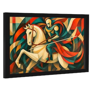Quadro Decorativo São Jorge em Abstrato Moldura Preta e Vidro - 118x78cm -