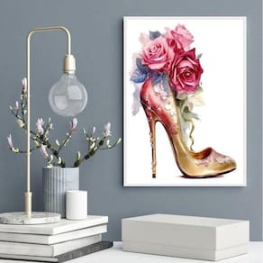 Quadro decorativo sapato de salto com flores 45x34cm - com vidro Moldura: madeira preta Informações do produto tire todas as suas dúvidas no descritivo abaixo: decoração para quarto, sala, cozinha, escritório, área gourmet e muito mais. Chega de paredes vazias medidas - cada peça tem 45x34cm a3 . Material do papel - papel fotográfico brilhante de altíssima resolução acabamento - todos os quadros são acompanhados de vidro para proteção da imagem. - moldura em madeira maciça na cor preta ou branca conforme produto escolhido e pendurador . - os quadros são embalados de forma segura com plástico bolha com camada dupla de acordo com o tamanho dos quadros. Garantia - garantia de 3 meses. Meu quadro chegou. Como posso fixá-lo Você precisa apenas de um martelo e um prego, pois os quadros já vão acompanhados de penduradores. Esta é a forma mais indicada. Como posso limpar meu quadro A limpeza é feita como um móvel comum da sua casa. Apenas um pano seco ou espanador são suficientes para tal Ean: 7896245647925