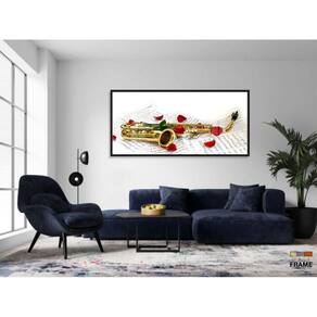 Quadro Decorativo Saxofone130x60 Moldura Preta 2x2