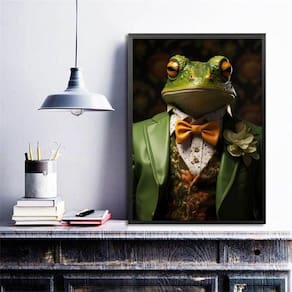 Quadro decorativo senhor sapo 24x18cm Moldura: madeira preta Informações do produto tire todas as suas dúvidas no descritivo abaixo: decoração para quarto, sala, cozinha, escritório, área gourmet e muito mais. Chega de paredes vazias medidas - cada peça tem 24x18cm a5 . Material do papel - papel fotográfico brilhante de altíssima resolução acabamento - todos os quadros são acompanhados de uma película de acetato para proteção da imagem. - os quadros são embalados de forma segura com plástico bolha com camada dupla de acordo com o tamanho dos quadros. Garantia - garantia de 3 meses. Meu quadro chegou. Como posso fixá-lo Você precisa apenas de um martelo e um prego, pois os quadros já vão acompanhados de penduradores. Esta é a forma mais indicada. Caso prefira, você pode utilizar uma fita dupla face neste caso, sugerimos de alta qualidade para evitar que descole e seu quadro caia . Como posso limpar meu quadro A limpeza é feita como um móvel comum da sua casa. Apenas um pano seco ou espanador são suficientes para tal