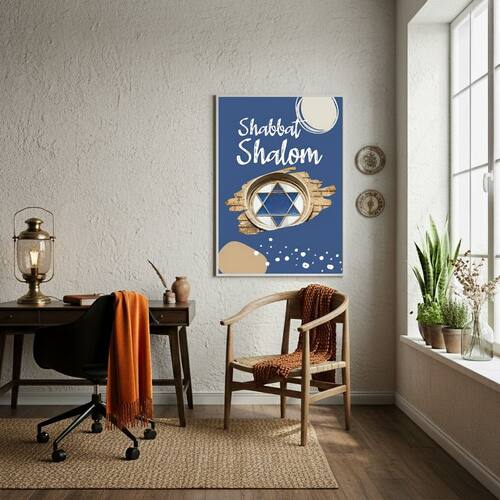 Quadro Decorativo Shabbat Shalom - 70x50cm - Cor: Moldura Branca