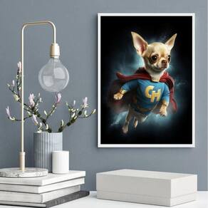 Quadro decorativo super chihuahua 45x34cm - com vidro Moldura: madeira branca Informações do produto tire todas as suas dúvidas no descritivo abaixo: decoração para quarto, sala, cozinha, escritório, área gourmet e muito mais. Chega de paredes vazias medidas - cada peça tem 45x34cm a3 . Material do papel - papel fotográfico brilhante de altíssima resolução acabamento - todos os quadros são acompanhados de vidro para proteção da imagem. - moldura em madeira maciça na cor preta ou branca conforme produto escolhido e pendurador . - os quadros são embalados de forma segura com plástico bolha com camada dupla de acordo com o tamanho dos quadros. Garantia - garantia de 3 meses. Meu quadro chegou. Como posso fixá-lo Você precisa apenas de um martelo e um prego, pois os quadros já vão acompanhados de penduradores. Esta é a forma mais indicada. Como posso limpar meu quadro A limpeza é feita como um móvel comum da sua casa. Apenas um pano seco ou espanador são suficientes para tal Ean: 7890161939812