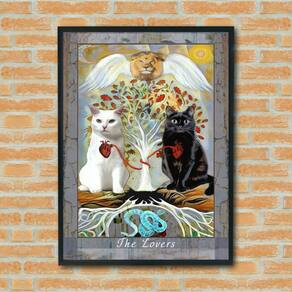 Quadro Decorativo Tarot Gatos Os Apaixonados - 70x50cm - Cor: Moldura Preta