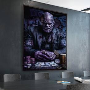 Quadro Decorativo Thanos Negociador Moldura Preta e Vidro - 150x100cm -