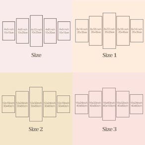 Peças menores: 25x40 cm | Peças médias: 25x51 cm | Peça central: 25x63 cm