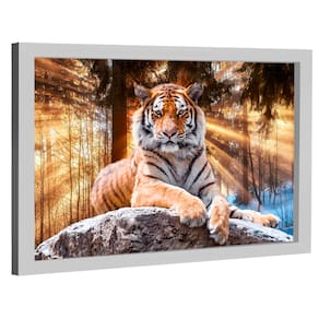Quadro Decorativo Tigre Iluminado Moldura Branca - 118x78cm -