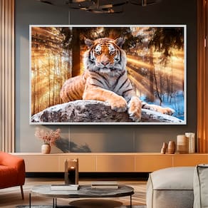 Quadro Decorativo Tigre Iluminado Borda Infinita - 118x78cm -