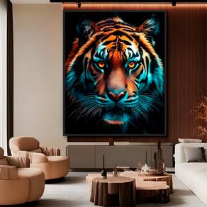 Quadro Decorativo Tigre Majestoso Variação Moldura Preta e Vidro - 84x54cm -