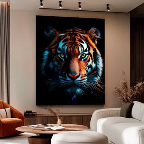 Quadro Decorativo Tigre Majestoso Moldura Preta e Vidro - 84x54cm -