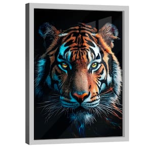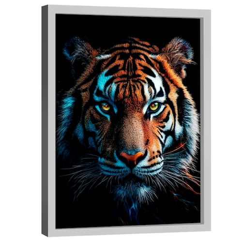 Quadro Decorativo Tigre Majestoso Moldura Branca - 84x54cm -