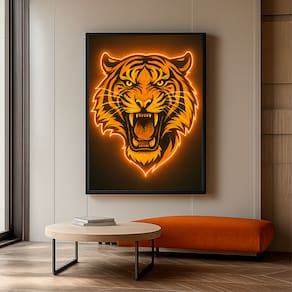 Quadro Decorativo Tigre Neon Amarelo Borda Infinita - 118x78cm -