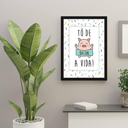 Quadro Decorativo To De Bacon a Vida - Tamanho: A4 (20 x 30) / Acabamento: Película de acetato / Moldura: Madeira preta