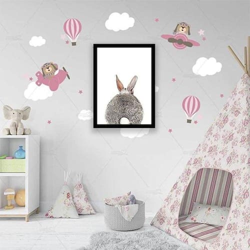 Quadro Decorativo Traseira Coelhinho - Tamanho: A4 (20 x 30) / Acabamento: Película de acetato / Moldura: Madeira preta